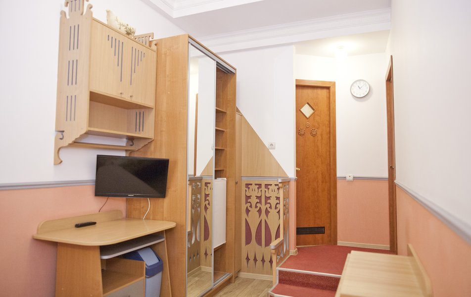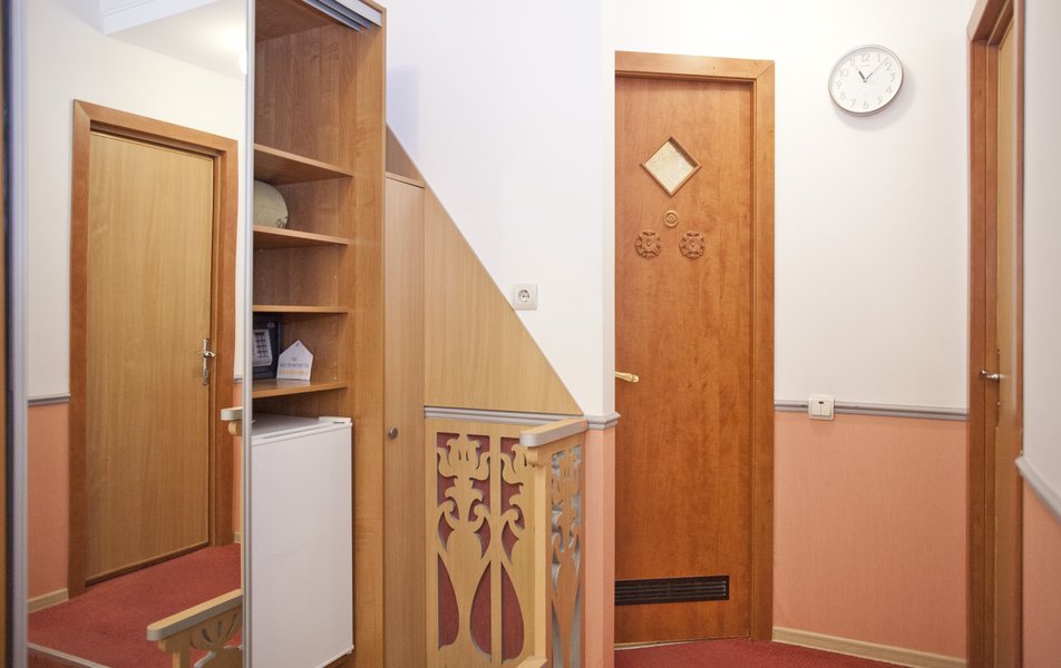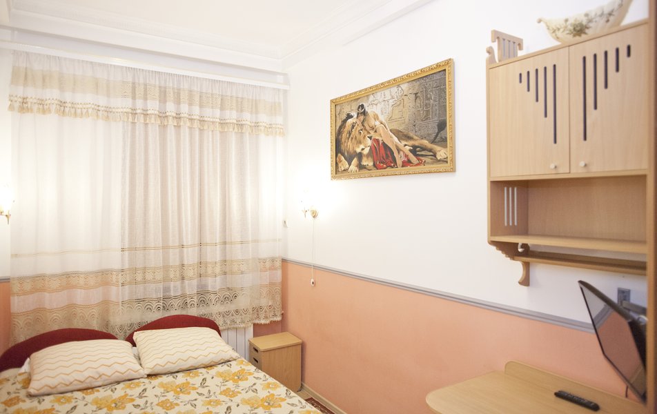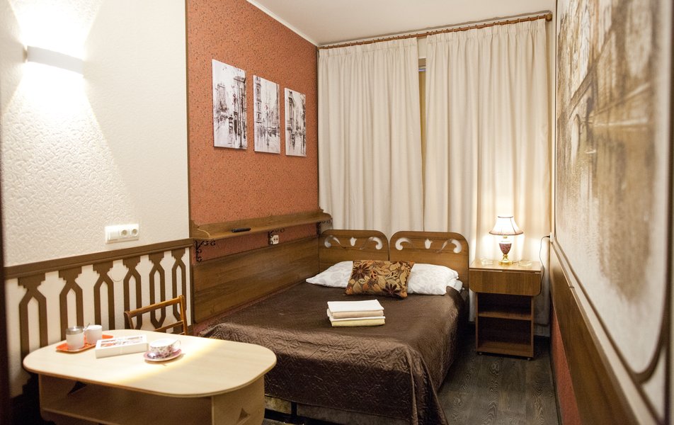 В отеле очень маленькие номера. Кровати с выбитыми подзорами и накидками, вышитые занавески и вязаные салфетки, о которых так красиво написано на сайте отеля, отсутствуют. Никаких принадлежностей в ванной комнате нет, кроме половины флакона жидкого мыла, которым видно пользовались предыдущие жильцы и будут пользоваться следующие. Коврик в ванной удалось выпросить. Полотенце выдается только одно. Душевая кабина с гидромассажем сломана. Из 5 лампочек в люстре горят только 2. "Вкусный" завтрак, о котором написано на сайте, возможен только в 3 вариантах на выбор: это яишница с сосисками, подогретые блинчики с мясом или с творогом фабричного производства. Больше ничего. Причем можно получить что-то одно. И так каждый день. Оплатить проживание попросили вперед, так как хозяин куда-то уезжал, и ему нужны были деньги. К достоинствам можно отнести бесплатный Wi-Fi, близость к метро, Московскому вокзалу и Невскому проспекту и тихий двор.