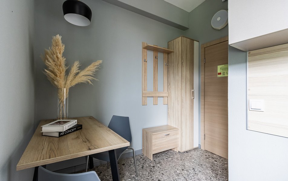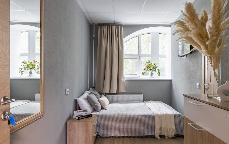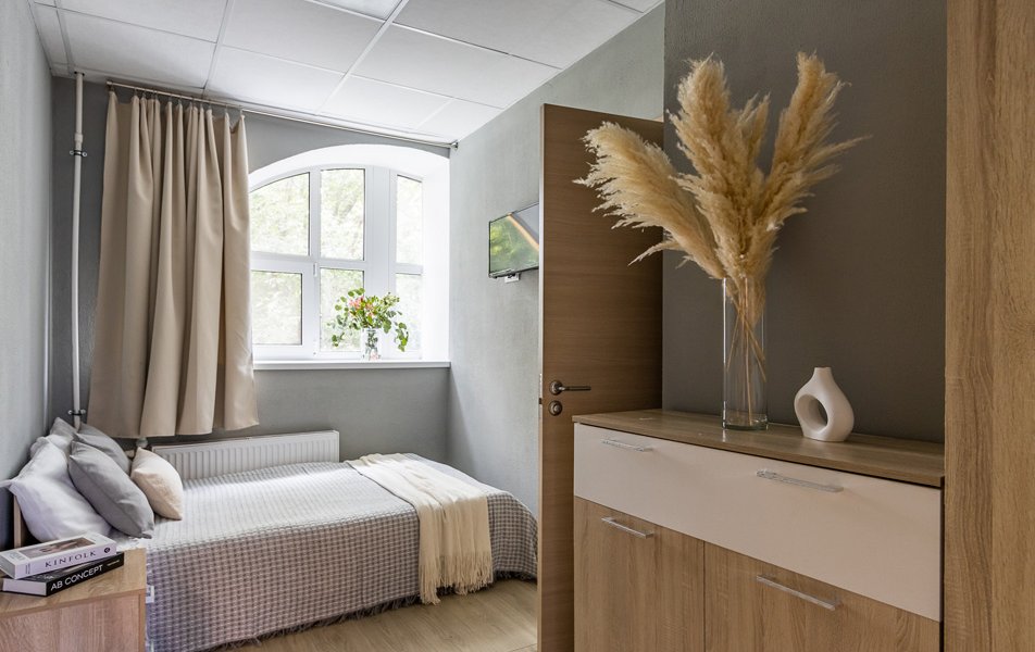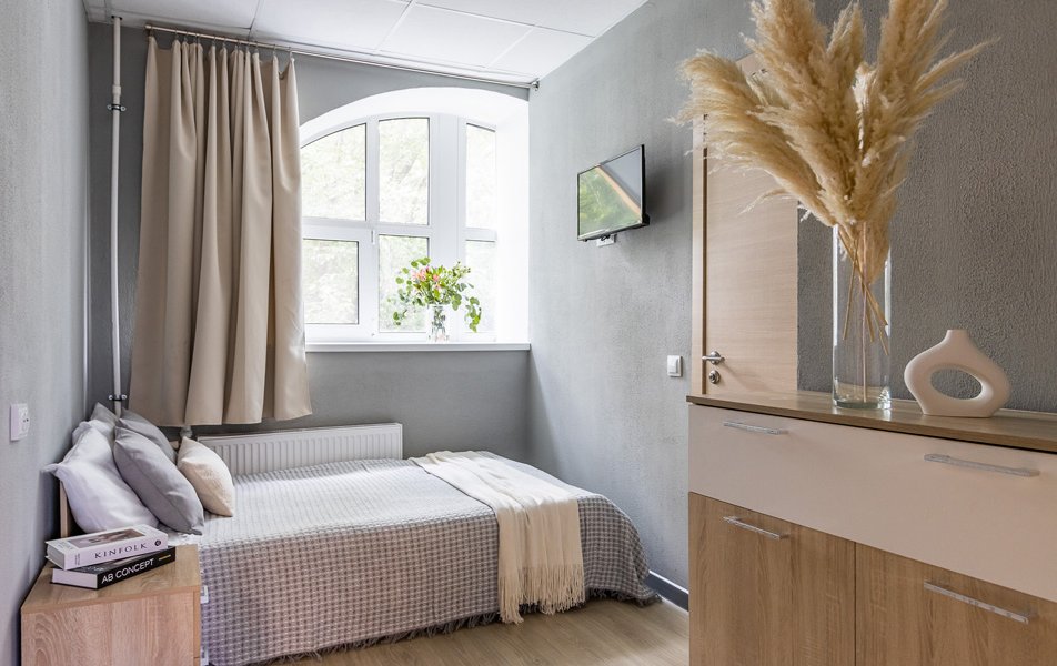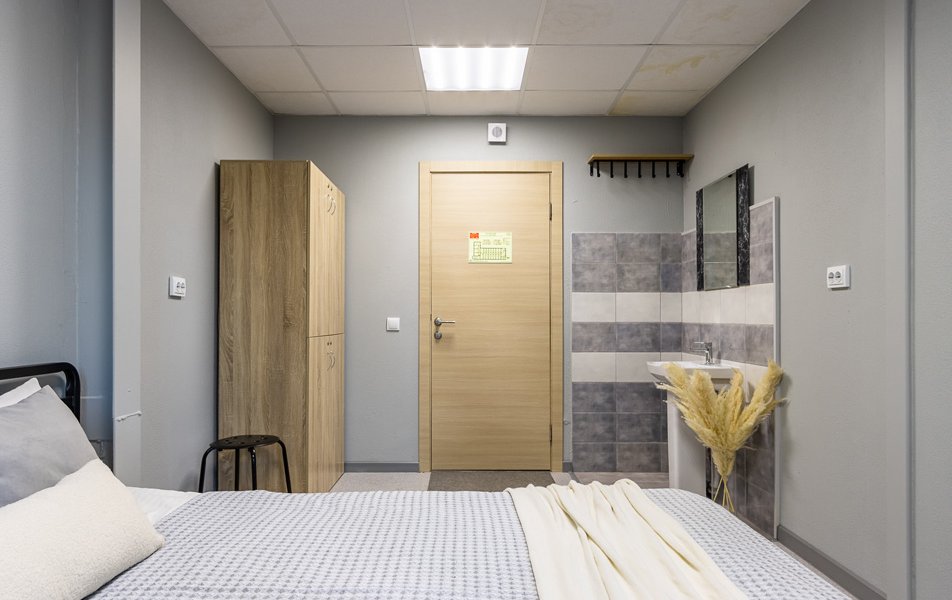 Стандартный 1-местный 1-комнатный Количество комнат: 1-комнатный Тип номера: Стандартный Кол-во номеров: 14 Кол-во основных мест: 1 Площадь (кв. м): 12 Мебель: вешалка, зеркало, кровать односпальная, прикроватная тумбочка, шкаф Оборудование: кондиционер, телевизор Сервис: Wi-Fi бесплатно, смена полотенец, смена постельного белья, уборка номера