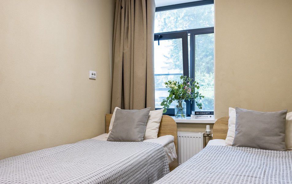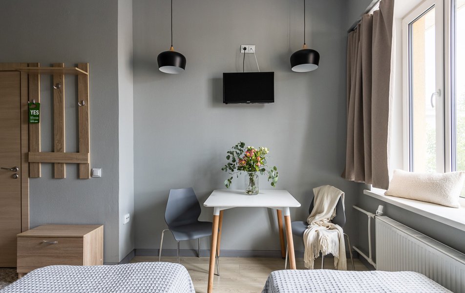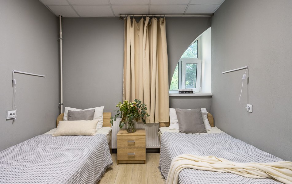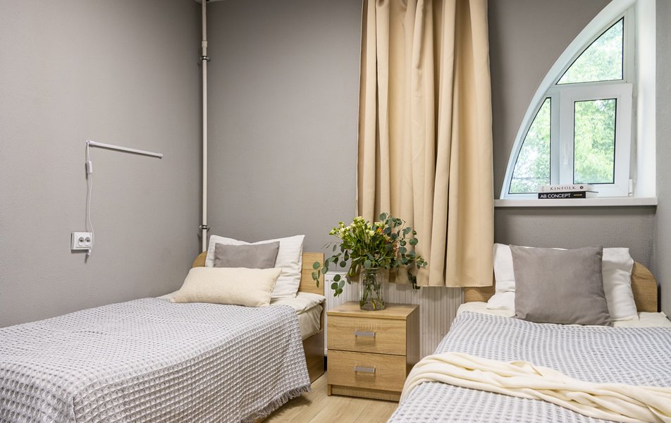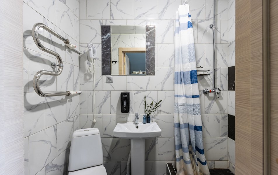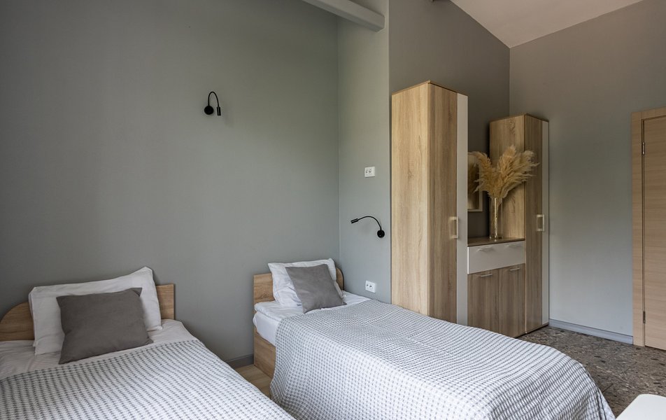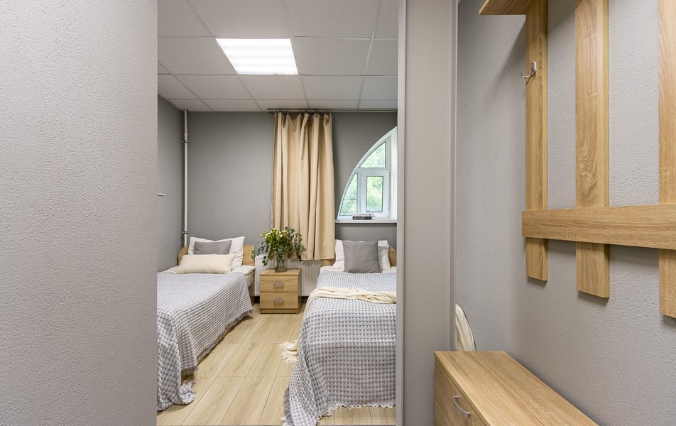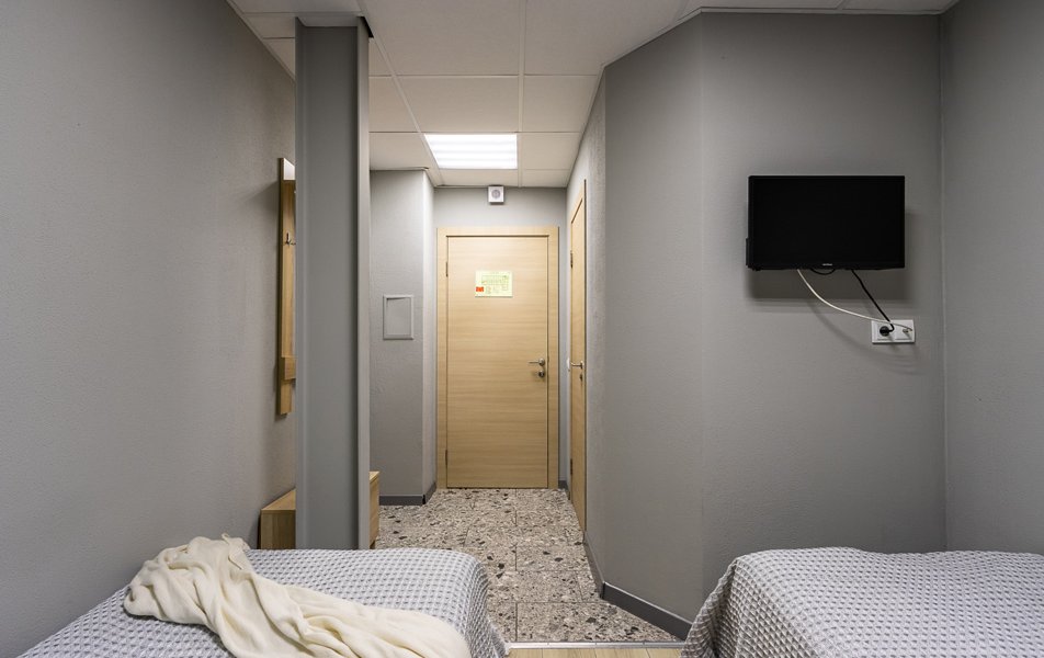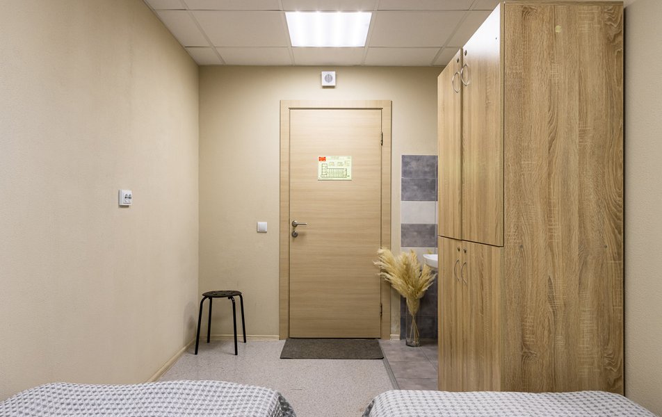 Комфорт 2-местный 1-комнатный Количество комнат: 1-комнатный Тип номера: Комфорт Кол-во номеров: 4 Кол-во основных мест: 2 Площадь (кв. м): 18 Мебель: вешалка, зеркало, кровати односпальные, прикроватные тумбочки, стол, стулья, шкаф Оборудование: кондиционер, телевизор Санузел: с душем, туалетные принадлежности, фен Сервис: Wi-Fi бесплатно, смена полотенец, смена постельного белья, уборка номера